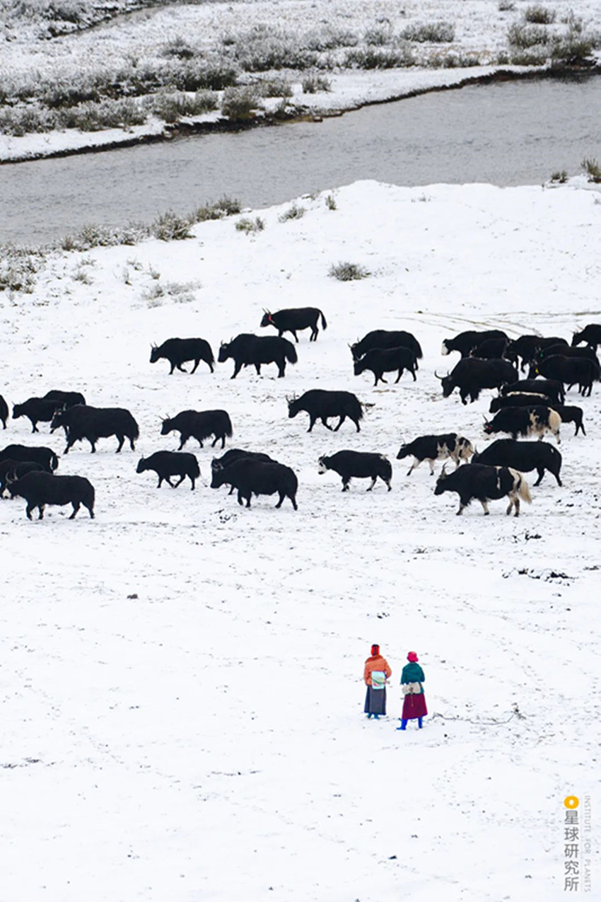 高原上定居不易而自然還有更多的考驗(yàn),高寒貧瘠的土地,山脈阻隔的交通,峽谷中蓄勢的山洪,斷裂帶上頻繁的震顫,隨時都可能給人們的生活籠罩上一層陰影。所幸從古至今,不斷地適應(yīng)、不斷地創(chuàng)造,成為了這片人間的底色。為了抵御高原的寒冷,人們用山羊等動物皮毛織起布匹,縫制寬袍長袖的袍子,發(fā)展出特色鮮明的藏裝;為了對抗物產(chǎn)的貧瘠,人們飼養(yǎng)牦牛,從牦牛奶、牦牛肉中獲取營養(yǎng),用牦牛毛織成的布料做帳篷,點(diǎn)燃牦牛糞生火。