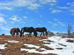 在高原,藍(lán)天、白云、白雪、冬樹、駿馬、無(wú)際曠野等都是美物,而這些,在2006年12月的某個(gè)雪后天晴的日子齊聚馬鞍山頂,讓我們飽享了一餐視覺盛宴,并印象深刻。