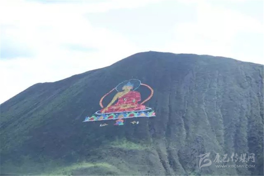 看,佛主正在向我們微笑,這尊巨大的佛像是由然梯寺的活佛使用4萬根經幡,在沒有使用任何輔助工具的情況下花費一個月的時間創(chuàng)作而成。每當風吹過,大佛就會隨風飄舞。就如同在向四面八方散發(fā)佛光一樣。