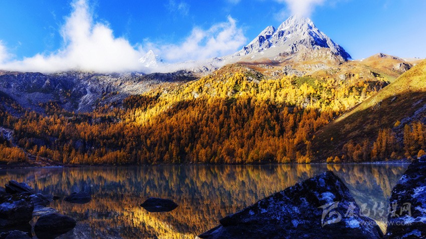 深秋季節(jié),騎馬上山,穿過(guò)彩色秋林來(lái)到湖邊,但見雪山腳下,層巒疊嶂,落葉松間,一池秋水像一顆純凈的寶石,鑲嵌在嶙峋陡峭的高山峽谷中,偎依在茂密的原始森林旁,湖水倒映著藍(lán)天白云和金黃的落葉松,靜謐而神秘,散發(fā)著迷人的光芒。這里沒(méi)有絲毫人工打造的痕跡,這里沒(méi)有一點(diǎn)人間煙火的味道,這里就是一方充滿誘惑的世外桃源——道孚甲依拉措。
