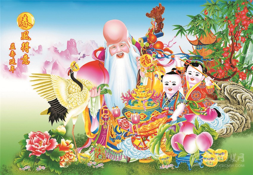 年畫對人作為一個(gè)特殊物種的感性、感覺、感官的視覺包圍,是建立在民居、家庭、居室對身體的包圍(物理空間)基礎(chǔ)之上的,也是建立在年畫的張貼對人的精神恐懼的安慰和安撫并使之安寧的精神包圍(文化空間)之中的。這雙重的視覺包圍還包括了一個(gè)從物質(zhì)和精神的家園,到對人的出身、成長、成年、老齡、死亡的人生過程的全程包圍和看見。