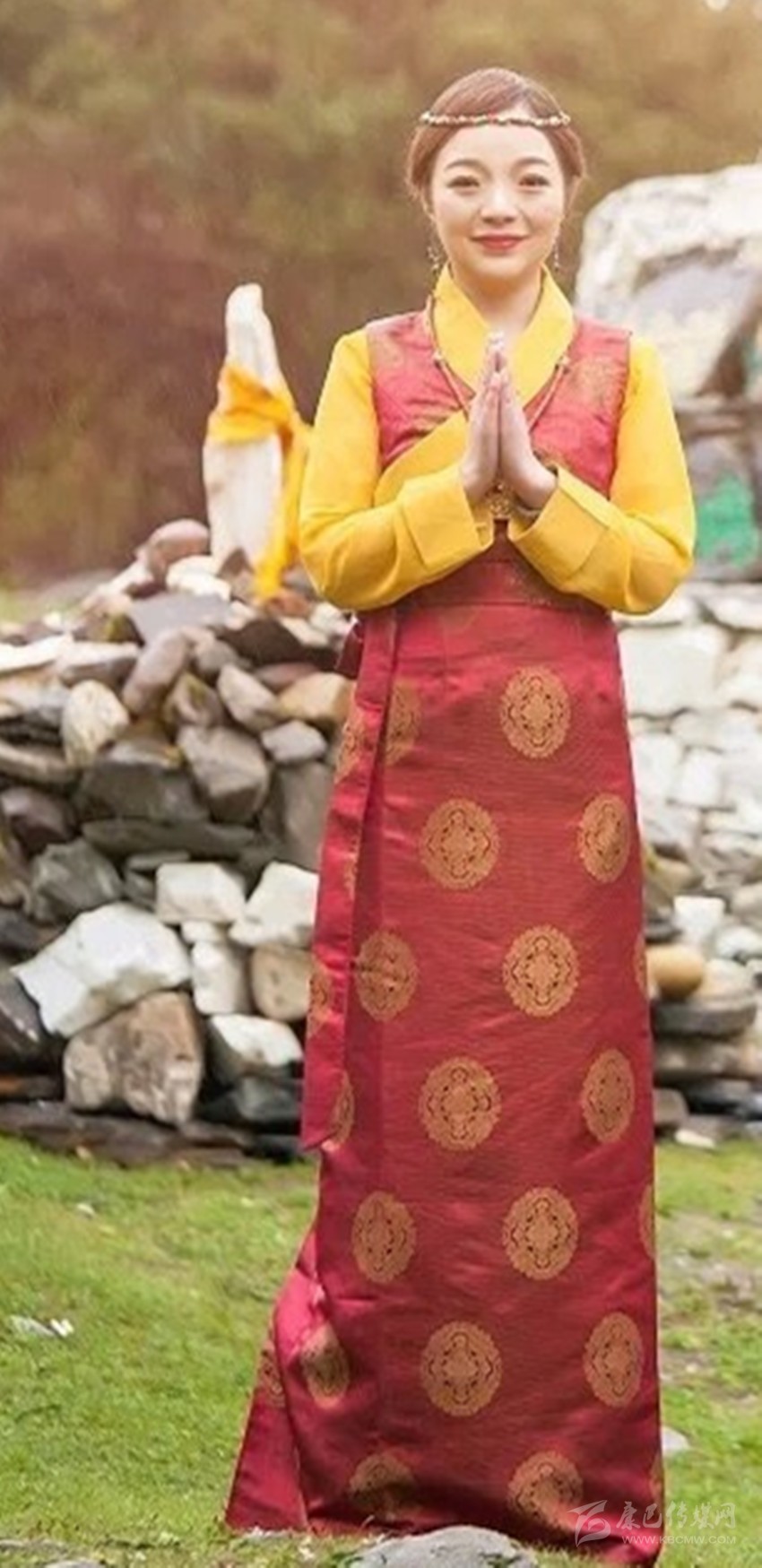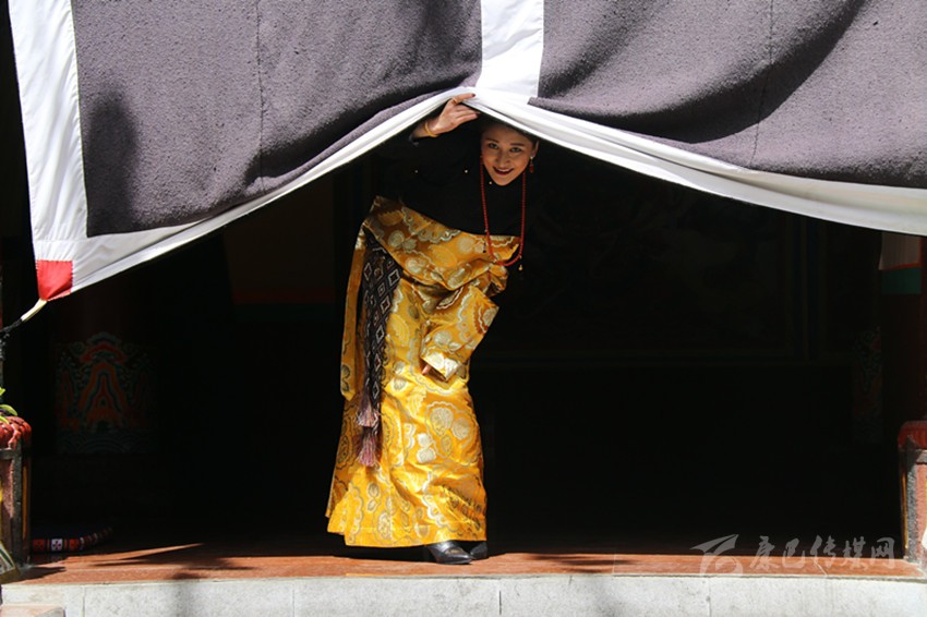 無論是經(jīng)典的黑色立領上衣還是金邊裝飾的翻領上衣,都十分時髦美觀,配上做工精細,由毛呢、氆氌等材料制成的充滿民族特色花紋的下衣,加上華麗珠寶鑲嵌的腰帶是對傳統(tǒng)藏裝的傳承與發(fā)展。