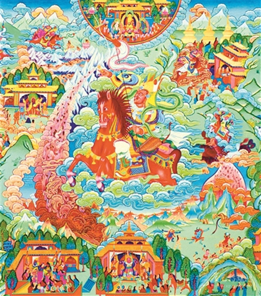 “中間世上各種紛爭”,講的是格薩爾從誕生到升天的全過程,這一部分,構成了格薩爾的全部英雄業(yè)績,也是史詩的主體部分。