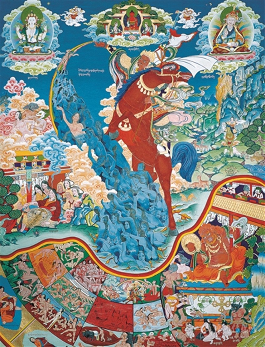 這方面,我自己就有切身的體會,深刻的感受。我小的時候,跟著大人進寺院朝拜,那里通過一個個壁畫、一幅幅唐卡生動地、形象地、藝術地展現(xiàn)的極樂世界美妙祥和、令人向往、讓人憧憬的幸福生活;十八層地獄萬劫不復,令人恐懼、讓人見而生畏、不寒而栗的深重苦難,給我幼小的心靈以強烈的震撼,多年以后,依然刻骨銘心,揮之不去,難以忘懷。這就是“德唐”,或“協(xié)唐”、“杰唐”的藝術魅力,也是宗教藝術的教化作用。