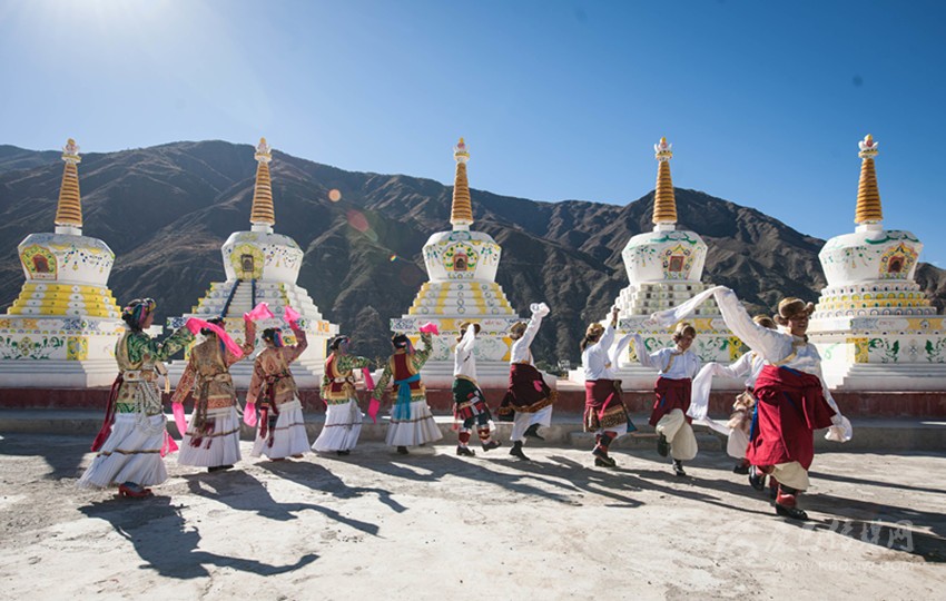 得榮“學羌”舞蹈起源于民間,流傳于民間,傳唱至今,無論其唱詞、韻調、舞步、服飾都具有濃郁的地方特色,其間蘊涵著代代相傳的精神信仰、價值取向。2018年,得榮因情舞“學羌”被國家文化部命名為“中國情舞文化藝術之鄉(xiāng)”。