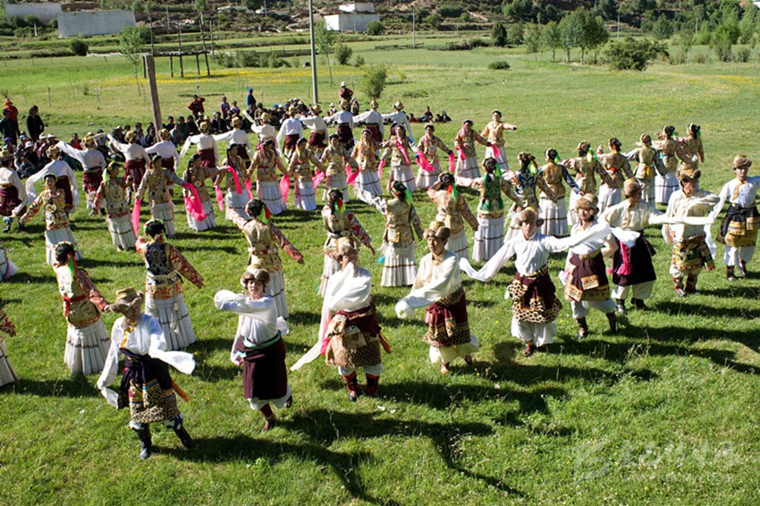 圖為瓦卡村民農閑時節(jié),跳學羌舞的歡樂場面。