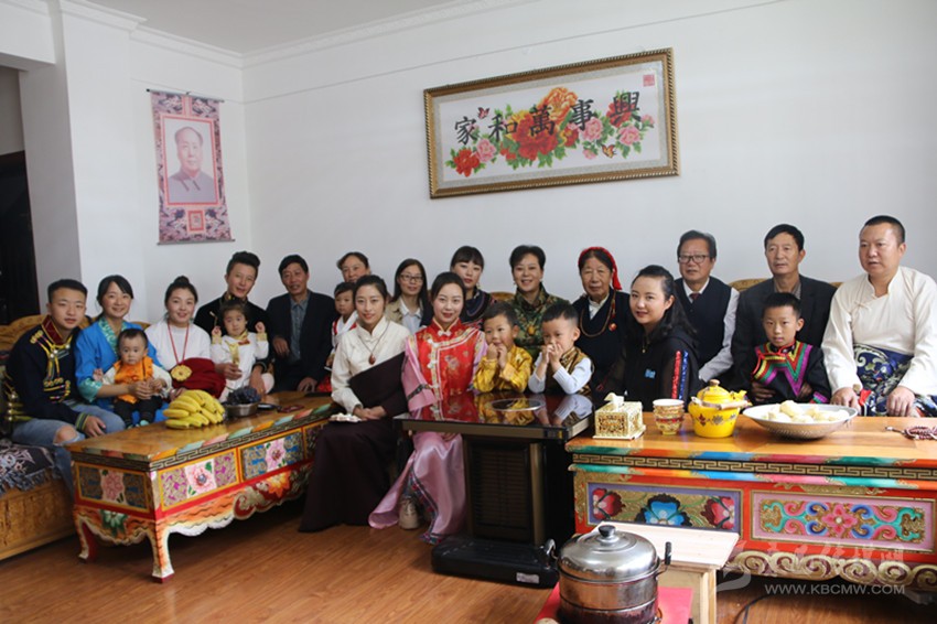 一夜春風(fēng),一夜細雨,九龍縣城濱河路春意盎然,4月12日,85歲高齡的王友珍呼吸著清新的空氣,在大兒媳婦澤仁翁姆的攙扶下,拄著拐杖走在步游道上,澤仁翁姆2014年便退休了,婆婆的腳因肌腱拉傷后,她每天都攙扶著婆婆下樓沿著濱河路走上一段路。碰見彝族或藏族市民,王友珍總是樂呵呵地和他們聊上幾句?!拔壹矣?8口人,是一個由藏、彝、回、滿、漢5種民族組成的大家庭,兒女、兒媳、女婿基本上都退休了,有的住在雙流,但大部分還是居住在一棟樓里。因為我腿腳不方便,兒女們還給我請了一個保姆,娃娃些對我孝順著呢!”王友珍滿臉都是笑意,“太陽和月亮是一個媽媽女兒,她們的媽媽叫光明,藏族和漢族是一個***女兒,我們的媽媽叫中國……”興之所至,王友珍即興唱了幾句《一個媽媽女兒》,而她們一家相敬如賓、團結(jié)友愛的佳話在九龍縣更是廣為流傳。