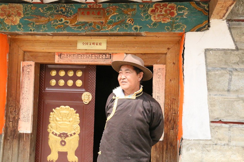 羅布扎西家門口的全國(guó)文明家庭牌匾格外引人注目。