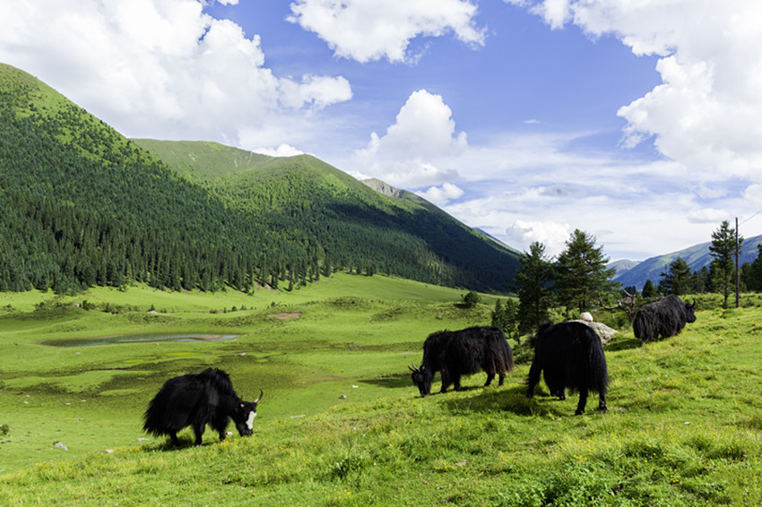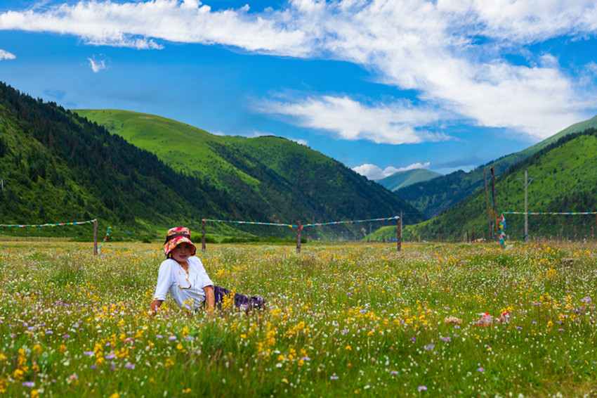 玉科,白猞猁皮鋪展開的長(zhǎng)長(zhǎng)山谷,依尼山是其心臟,扎拉山脈是其頭,噶科河、瑪科河是其雙臂,惹智塘和曲赤塘是其胸膛,革科和慶切科是其雙腳,措達(dá)以下則是其尾。這片山川地勢(shì),晶瑩的雪峰、郁郁蔥蔥的林海、翠綠的草甸,清澈的碧湖,湛藍(lán)如洗的天空、潔白的云朵,棲息著豐富的珍稀動(dòng)植物,構(gòu)成了一幅如詩(shī)如畫、動(dòng)人心魄的原生態(tài)畫卷。一年四季景致千姿百態(tài),美不勝收。夏三月,百花盛開,大地鋪展五彩錦緞。秋三月,一片金黃,映襯得山崗黃燦燦。冬三月,雪花翻飛,大地銀裝素裹。難怪旅游達(dá)人們要驚呼,贊美這里是甘孜的阿勒泰。