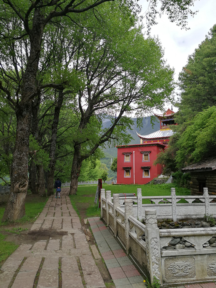 中國(guó)民俗有“大年初一不竄門(mén)”,這一天,康定人很多都會(huì)去寺廟燒香敬佛。前年大年初一,我便去了觀音閣。進(jìn)門(mén)處,有專供燒紙錢(qián)的地方。再上階梯,有長(zhǎng)列的白色佛塔,進(jìn)寺就可點(diǎn)燈朝拜。出了觀音閣,我順道去找獅子巖。公路一側(cè)的堡坎已將原來(lái)的小徑斬?cái)啵媳た?,小徑幾乎已沒(méi)了蹤跡。再仰頭望,獅子巖已是掩映在濃密的綠樹(shù)雜叢間。長(zhǎng)在右側(cè)的花椒樹(shù),已不見(jiàn)蹤影。幾株高大的白楊樹(shù)遮天蔽日,最大的都長(zhǎng)到盆口粗了?!鞍倌陿?shù)木”,這無(wú)疑還是當(dāng)年那幾棵白楊樹(shù)了。我艱難地鉆過(guò)荒叢爬到獅子巖腳下,那“祭祀臺(tái)”上如過(guò)去一樣擺放有貢品,旁邊和樹(shù)枝上掛有經(jīng)幡,但周?chē)詻](méi)有一絲煙熏火燎過(guò)的痕跡。
