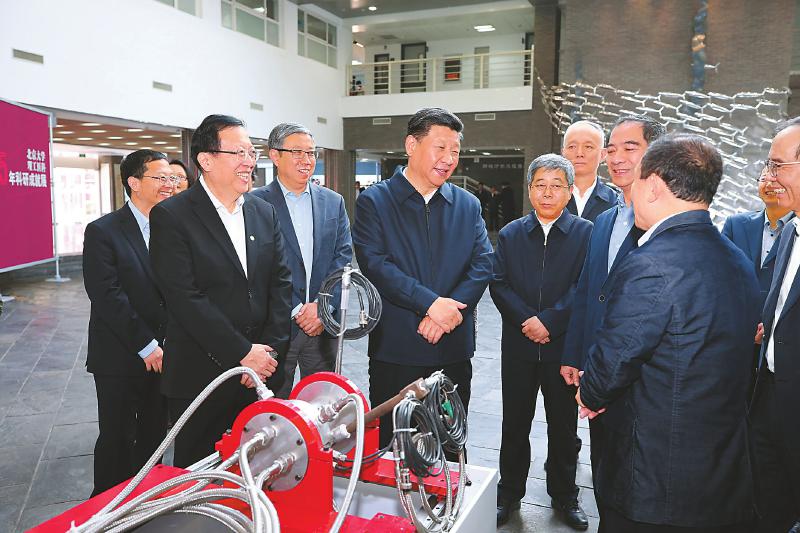 近年來,北京大學(xué)培養(yǎng)和匯聚了一批具有世界領(lǐng)先水平的科學(xué)家、科技領(lǐng)軍人才和創(chuàng)新團(tuán)隊(duì),科研綜合實(shí)力、原始創(chuàng)新能力顯著增強(qiáng)。在金光生命科學(xué)大樓一層大廳,展示了近年來北京大學(xué)在理科、工科、醫(yī)科等領(lǐng)域的科研成果。習(xí)近平認(rèn)真聽取關(guān)于學(xué)校學(xué)科建設(shè)、人才隊(duì)伍建設(shè)、科研創(chuàng)新能力提升等情況介紹,并仔細(xì)察看新一代干細(xì)胞技術(shù)、碳芯片技術(shù)、微型雙光子顯微成像系統(tǒng)等科研裝置和實(shí)物模型。習(xí)近平對(duì)大家說,看了你們的成果展示,我為你們感到驕傲。創(chuàng)新是引領(lǐng)發(fā)展的第一動(dòng)力,是國家綜合國力和核心競(jìng)爭(zhēng)力的最關(guān)鍵因素。重大科技創(chuàng)新成果是國之重器、國之利器,必須牢牢掌握在自己手上,必須依靠自力更生、自主創(chuàng)新。在這個(gè)問題上,我們一定要保持清醒。要繼續(xù)深化科技體制改革,把人、財(cái)、物更多向科技創(chuàng)新一線傾斜,努力在關(guān)鍵共性技術(shù)、前沿引領(lǐng)技術(shù)、現(xiàn)代工程技術(shù)、顛覆性技術(shù)創(chuàng)新上取得更大突破,搶占科技創(chuàng)新制高點(diǎn)。高校是科技創(chuàng)新體系的重要組成部分,高??蒲腥藛T是我國科技創(chuàng)新的重要隊(duì)伍。要加強(qiáng)學(xué)科之間的協(xié)同創(chuàng)新,加強(qiáng)對(duì)交叉學(xué)科群和科技攻關(guān)團(tuán)隊(duì)的支持,培養(yǎng)造就更多具有國際水平的科技人才和創(chuàng)新團(tuán)隊(duì)。