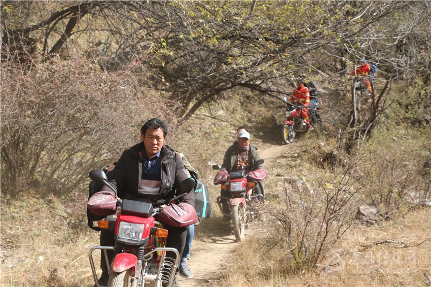 為了確保安全,澤仁頓珠不敢提速。好不容易騎到江邊,剩下的約7公里路全是淤泥,連摩托車也上不去了。澤仁頓珠丟下車子,背著物資徒步到壩頂。一趟下來花了3個多小時。