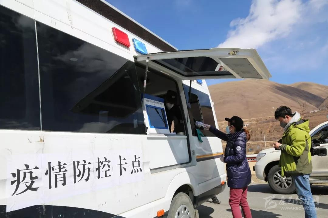 “麻煩大家準備好身份證,先測個體溫,再登記?!?月8日,記者從康定至道孚,在康定境內(nèi)經(jīng)歷了兩次檢查,到達道孚縣八美鎮(zhèn)卡點,執(zhí)勤人員攔下記者所乘車輛,詢問去向,并叮囑:“要做好防護。”