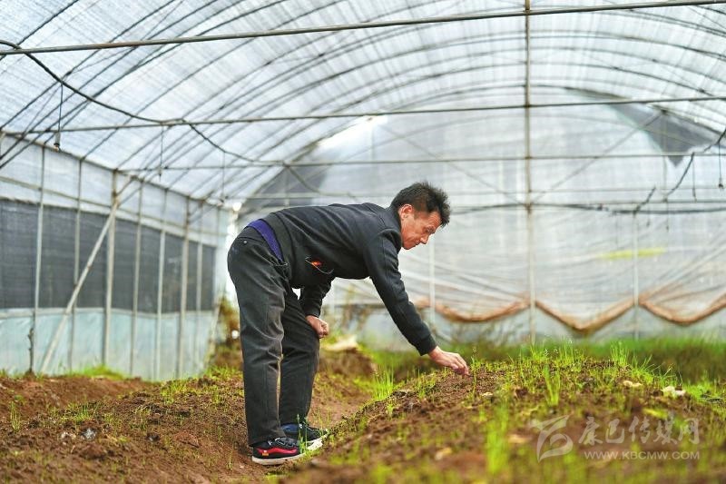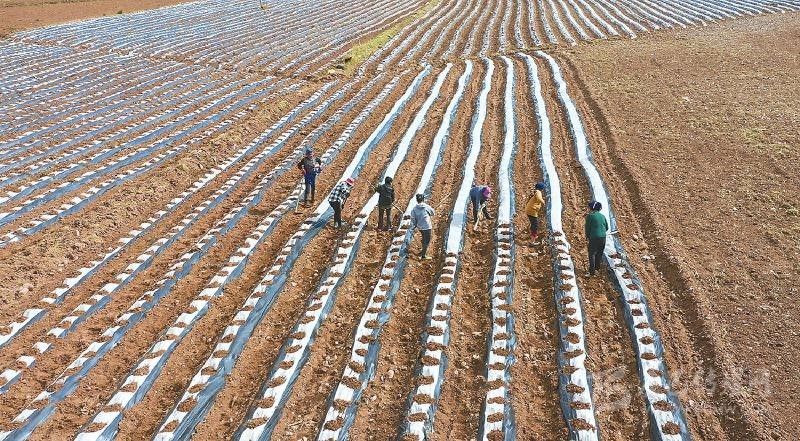 圖為在越西縣新民鎮(zhèn)大寨村,村民正在點種經濟作物烤煙。