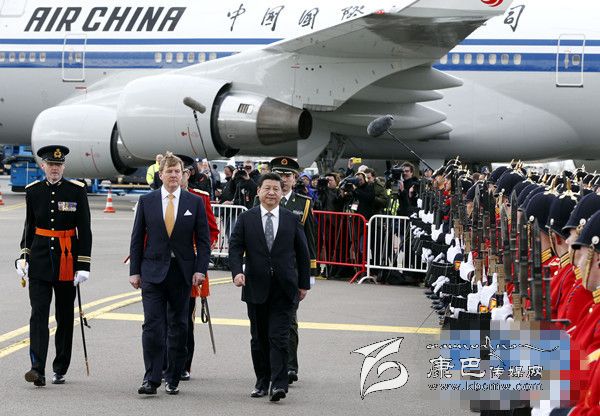 3月22日,國家主席習(xí)近平抵達(dá)阿姆斯特丹,應(yīng)荷蘭國王威廉-亞歷山大邀請(qǐng),對(duì)荷蘭進(jìn)行國事訪問,開啟歐洲之旅。威廉-亞歷山大在機(jī)場(chǎng)為習(xí)近平舉行隆重歡迎儀式。這是習(xí)近平在威廉-亞歷山大陪同下檢閱儀仗隊(duì)。新華社記者 鞠鵬 攝