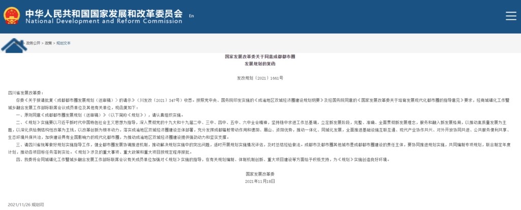 國家發(fā)展改革委關于同意成都都市圈