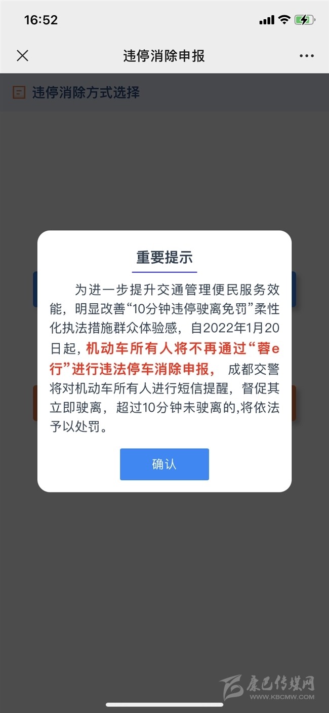 今天,記者獲悉,為進(jìn)一步提升交通管理便民服務(wù)效能,明顯改善“10分鐘違停駛離免罰”柔性化執(zhí)法措施群眾體驗(yàn)感,自2022年1月20日起, 機(jī)動(dòng)車(chē)所有人將不再通過(guò)“蓉e行”進(jìn)行違法停車(chē)消除申報(bào),成都交警將對(duì)機(jī)動(dòng)車(chē)所有人進(jìn)行短信提醒,督促其立即駛離,超過(guò)10分鐘未駛離的,將依法予以處罰。
