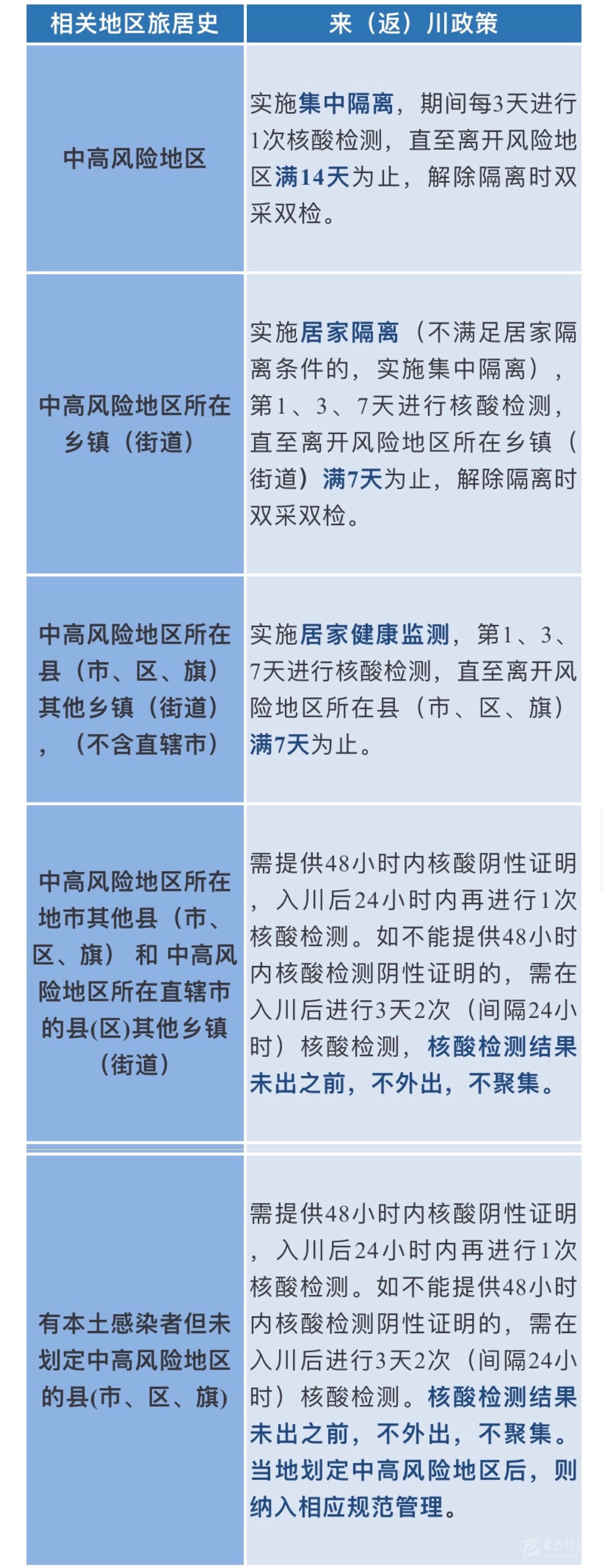 全省中小學校、托幼機構(gòu)師生員工本人或其共同居住的家人14天內(nèi)有省外旅居史、有與省外返川人員密切接觸史的,返校時應提供48小時內(nèi)核酸檢測陰性證明;如不能提供48小時內(nèi)核酸檢測陰性證明的,需在返校后24小時內(nèi)進行1次核酸檢測。