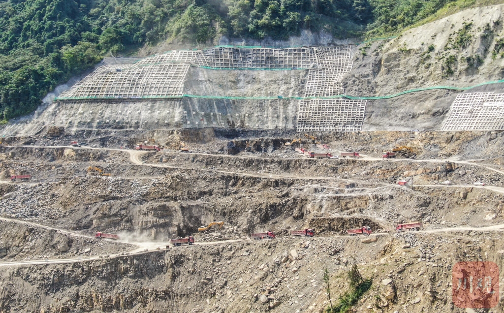 “四季度我們拿出了決戰(zhàn)的姿態(tài),加大了石料開采和運(yùn)輸強(qiáng)度。挖掘機(jī)從之前8臺增加到13臺,重型卡車也保持在80輛至120輛之間,后面還將增加到150輛左右。”據(jù)張鐸介紹,天氣好的時候,料場還要進(jìn)行夜間施工。