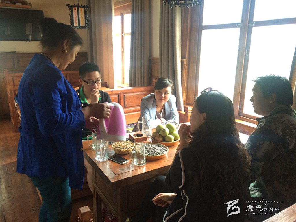 日玲卡瓦鄉(xiāng)村酒店老板正在招待游客。得榮宣傳部 供圖