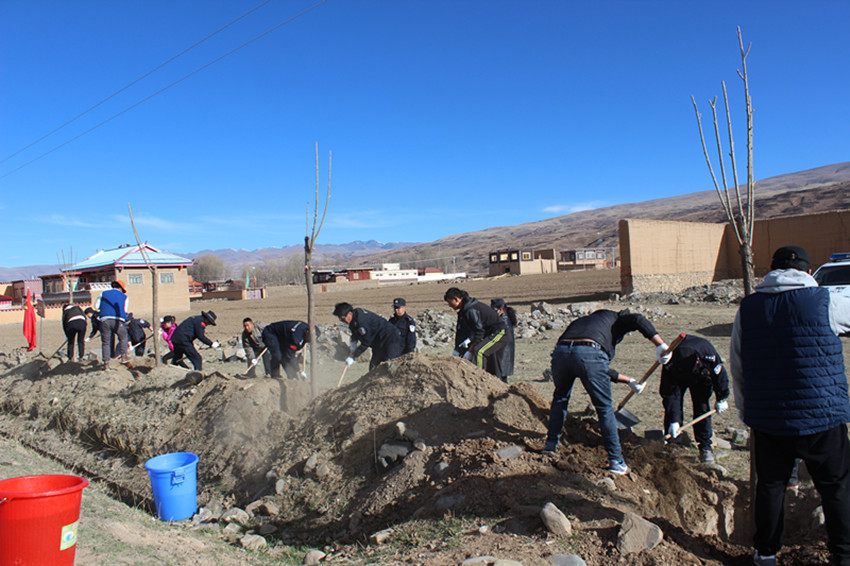 本網(wǎng)訊(縣委中心報(bào)道組 余應(yīng)瓊 文/圖)種下一片綠色,共建生態(tài)家園。4月12日,甘孜縣黨政領(lǐng)導(dǎo)、干部群眾紛紛組成義務(wù)植樹小組,開展大規(guī)模的綠化行動。