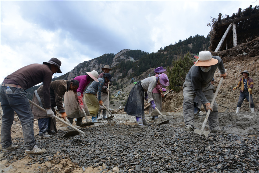 “現(xiàn)在建設(shè)的聯(lián)戶路總長(zhǎng)5公里,寬2.5米,高10公分,預(yù)計(jì)在月底前全部修建完成,建好后將大大提升村民的幸福指數(shù)?!备甑麓羼v村干部扎西擁章介紹,“我們駐村工作組和群眾參與修建,就是要在一線匯聚脫貧攻堅(jiān)的力量,才能激發(fā)群眾脫貧的內(nèi)生動(dòng)力和對(duì)美好生活的向往,才能真正意義上實(shí)現(xiàn)脫貧奔康?!?/span>