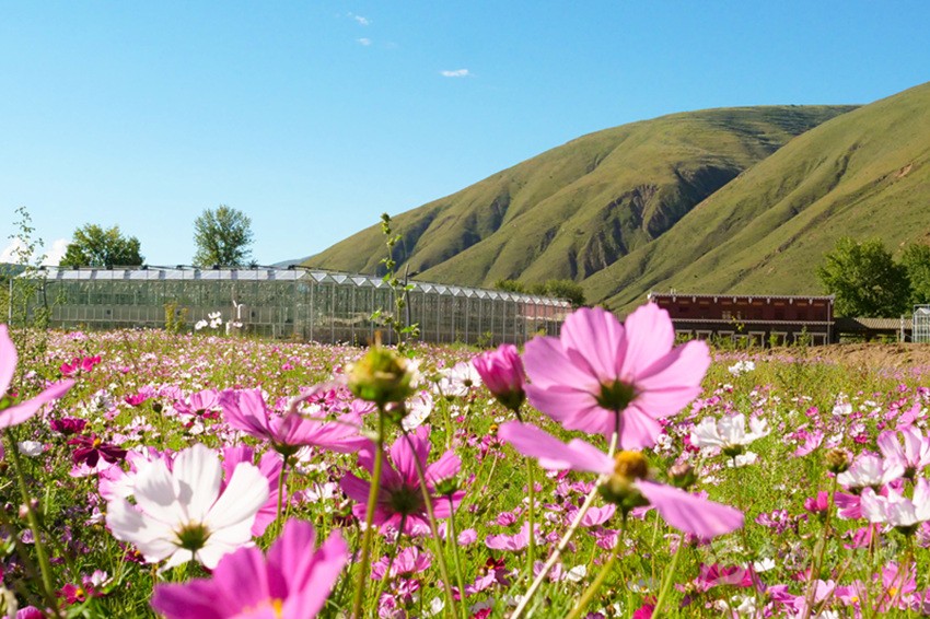當車輛飛馳在G305沿線,遠處顏色鮮艷的圓柱形建筑十分吸引眼球,推開絳紅色的木質大門那一刻,就像是開啟了一座寶藏之門,經(jīng)過半圓的坡道,來到了位于道孚縣鮮水鎮(zhèn)孜龍村的甘孜州康巴植物園。