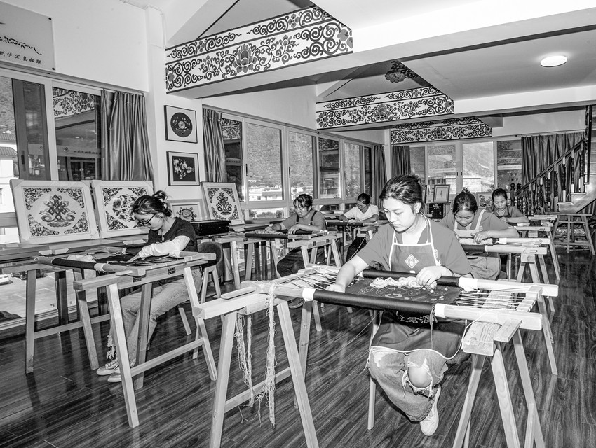 據(jù)烹壩鎮(zhèn)副鎮(zhèn)長(zhǎng)王昇介紹,2018年在省州縣婦聯(lián)的大力支持和幫助下,烹壩鎮(zhèn)成立了“指尖藏花貴瓊刺繡”合作社,150余名婦女加入到合作社,參與刺繡。自從成立了合作社,村里的婦女們背著娃,繡著花,養(yǎng)活自己,養(yǎng)活全家?!爸讣獠鼗ㄙF瓊刺繡”合作社的“貴瓊藏繡”已成為烹壩鎮(zhèn)婦女增收的好項(xiàng)目。婦女們有事做了,干群關(guān)系也更加緊密,老百姓遇到問題也更加愿意找黨員、找干部。同時(shí)“貴瓊藏繡”這種康巴地區(qū)特有的非遺傳承技藝也得到了很好傳承和發(fā)揚(yáng)。