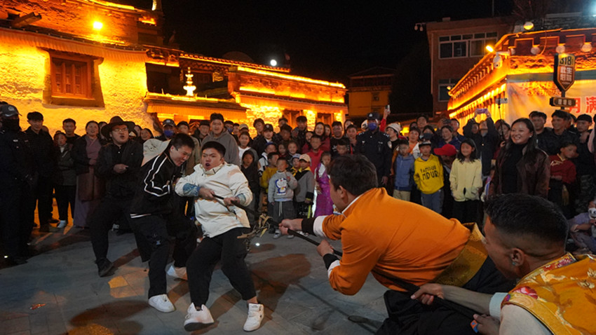 “江流宛轉(zhuǎn)繞芳甸,月照花林皆似霰……”農(nóng)歷八月十五,月色籠罩下的勒通古鎮(zhèn)·千戶藏寨,流淌著中華詩歌的悠悠古韻。9月29日晚,“我們的節(jié)日·中秋”新時代文明實踐系列活動之“月滿理塘、愛我中華”文藝展演,引得群眾和游客爭相拍照。藏戲舞蹈“扎西雪巴”、藏族踢踏舞讓觀眾領(lǐng)略到濃郁的民族風情,詩朗誦伴舞《我愛你,中國》引人入勝……一場場精彩演出展現(xiàn)了傳統(tǒng)文化的多重魅力。