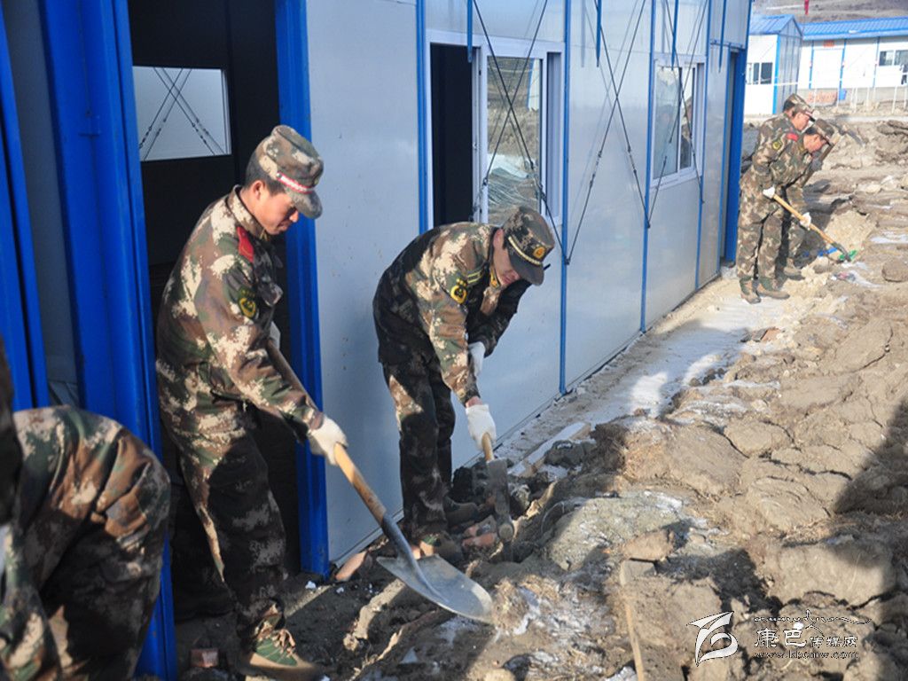 堅(jiān)守在康定“11.22”地震重災(zāi)區(qū)塔公鎮(zhèn)的武警四川總隊(duì)二支隊(duì)抗震救災(zāi)官兵,克服高寒缺氧,全力投入板房學(xué)校搭建,官兵們?cè)谄D苦的環(huán)境中度過(guò)了2015年的第一天。