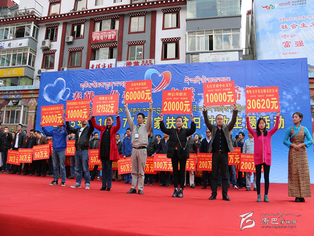 隨后,杜德清宣布2015年全國(guó)扶貧日甘孜主題活動(dòng)開(kāi)幕,捐款舉牌儀式正式開(kāi)始。