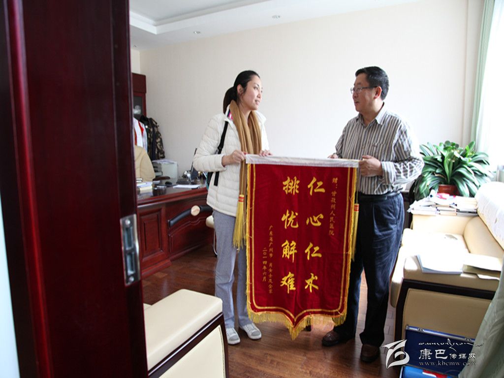 多吉院長代表醫(yī)院接受來自廣州的肖女士贈送的錦旗。