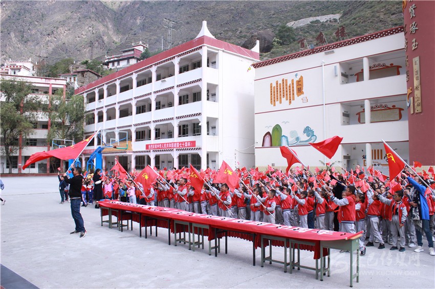 圖為丹巴縣川口寄宿制學(xué)校正在開展愛國主義教育活動(dòng)。 丹宣 圖