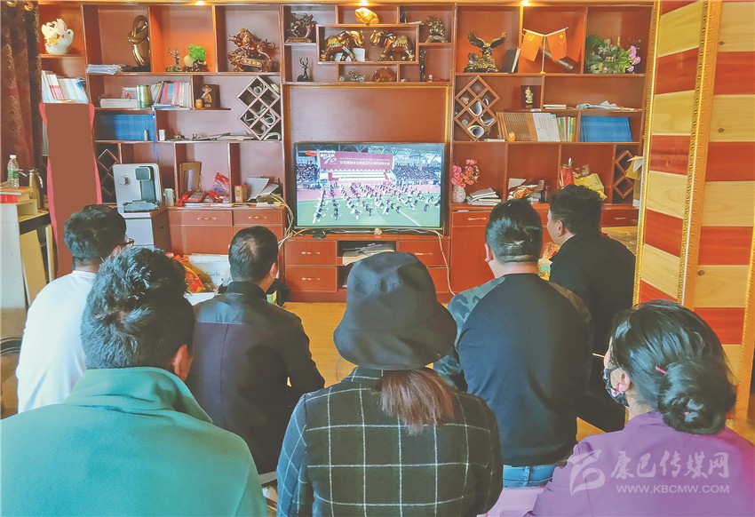 在得榮縣統(tǒng)計局會議室,該局干部職工早早就守候在電視機前,等待直播開始。當慶祝大會現(xiàn)場國旗升起、國歌奏響,該局干部職工也全體起立,向國旗行注目禮,同唱國歌;當看到精彩處時,大家不禁激動地熱烈鼓掌,齊聲叫好?!翱吹降脴s方隊的激情表演,那震撼的場面讓我心潮澎湃?!贝稳嗜褐壹拥卣f,“我們親眼目睹、親身感受了甘孜州成立70年來得榮發(fā)生的翻天覆地的變化,尤其是近十年來,發(fā)展越來越快、越來越好,作為一名甘孜兒女,我為生活在這片熱土感到非常自豪。”