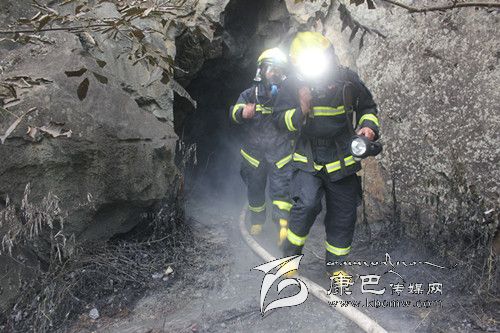 消防官兵在使用有毒氣體探測(cè)儀對(duì)現(xiàn)場(chǎng)氣體進(jìn)行檢測(cè)后發(fā)現(xiàn),雖然煙氣刺鼻,但未檢測(cè)出有毒氣體。在使用排煙機(jī)對(duì)山洞進(jìn)行持續(xù)排煙后,中隊(duì)派出兩名消防官兵佩戴空氣呼吸器和強(qiáng)光燈在水槍的掩護(hù)下進(jìn)入山洞偵查煙氣源。因山洞內(nèi)煙霧大,溫度高,能見度低,第一批消防官兵未能找到煙氣源。在短暫準(zhǔn)備后,第二批消防官兵攜帶相關(guān)器材進(jìn)入山洞繼續(xù)尋找。在距離山洞口十幾米的地方,消防官兵發(fā)現(xiàn)了大量正在燃燒的電纜線,經(jīng)初步確定,大量白煙就是電纜線燃燒后產(chǎn)生的。因山洞長時(shí)間受高溫烘烤隨時(shí)可能倒塌,消防官兵在與當(dāng)?shù)卣?fù)責(zé)人協(xié)商后對(duì)山洞洞口實(shí)施了封閉滅火。
